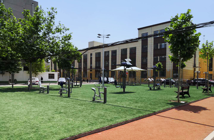 淄博某社區(qū)為了方便社區(qū)內(nèi)人員使用健身器材,通過米兰·(milan)中国官方网站體育的設(shè)計(jì),合理布局,搭建了以舒華智能健身驛站為主的戶外健身器材口袋公園。